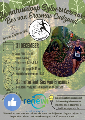 Leuk dat jij je wilt inschrijven voor de 2e Renewi Natuurloop/ Sylvestercross op 31-12-2025. (Het Bos van Erasmus tussen Nieuwvliet en Cadzand)