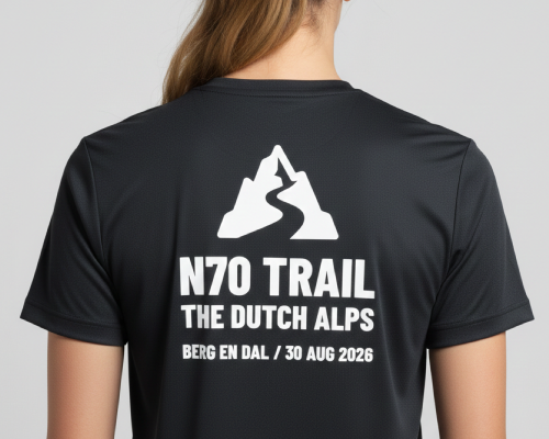 Uniek, high quality N70 Trailrun t-shirt (€ 27,95), te bestellen met je startnummer